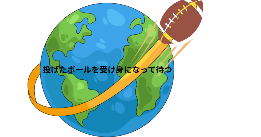 一度投げたら、ボールが巡って戻ってくるので、自分を広げて受け身になって待つ。